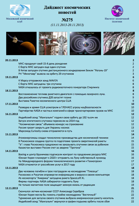 Дайджест космических новостей № 275 за период 11.11.2013-20.11.2013