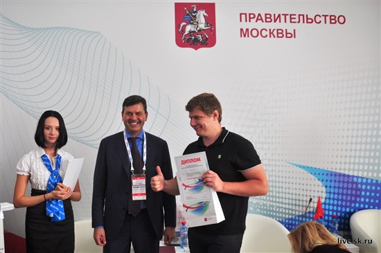 Андрей Воронин, руководитель "Метемпа" получает приз из рук Алексея Комиссарова