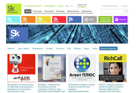 В данный момент на сайте «Сколково» выставлены 28 проектов, в том числе системы беспроводной оптической связи Artolink, системы видеонаблюдения Vocord, ПО Sodis Building M для автоматизированного мониторинга технического состояния зданий и инженерных систем, пакет Wobot Monitor для отслеживания онлайн-репутации в социальных медиа и многие другие программные и технические разработки.